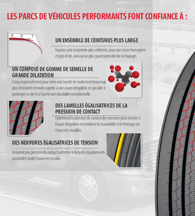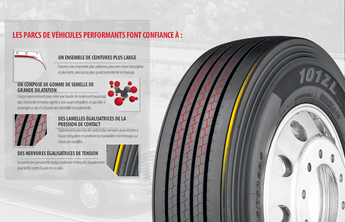 Le 101ZL™ Spec-2 de Yokohama offre une durabilité incroyable qui favorise une durée de vie impressionnante et fournit une efficacité énergétique remarquable afin de maintenir vos coûts bas.