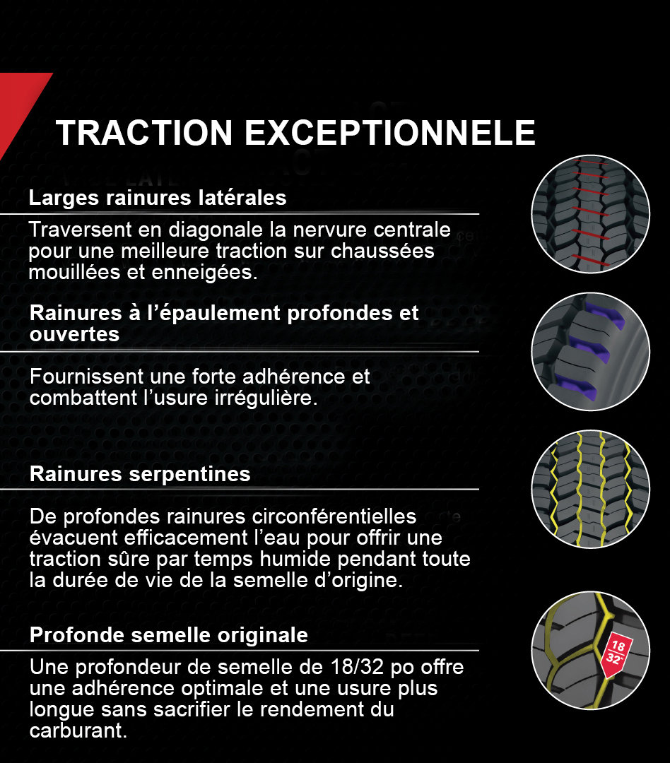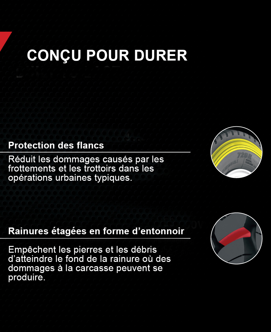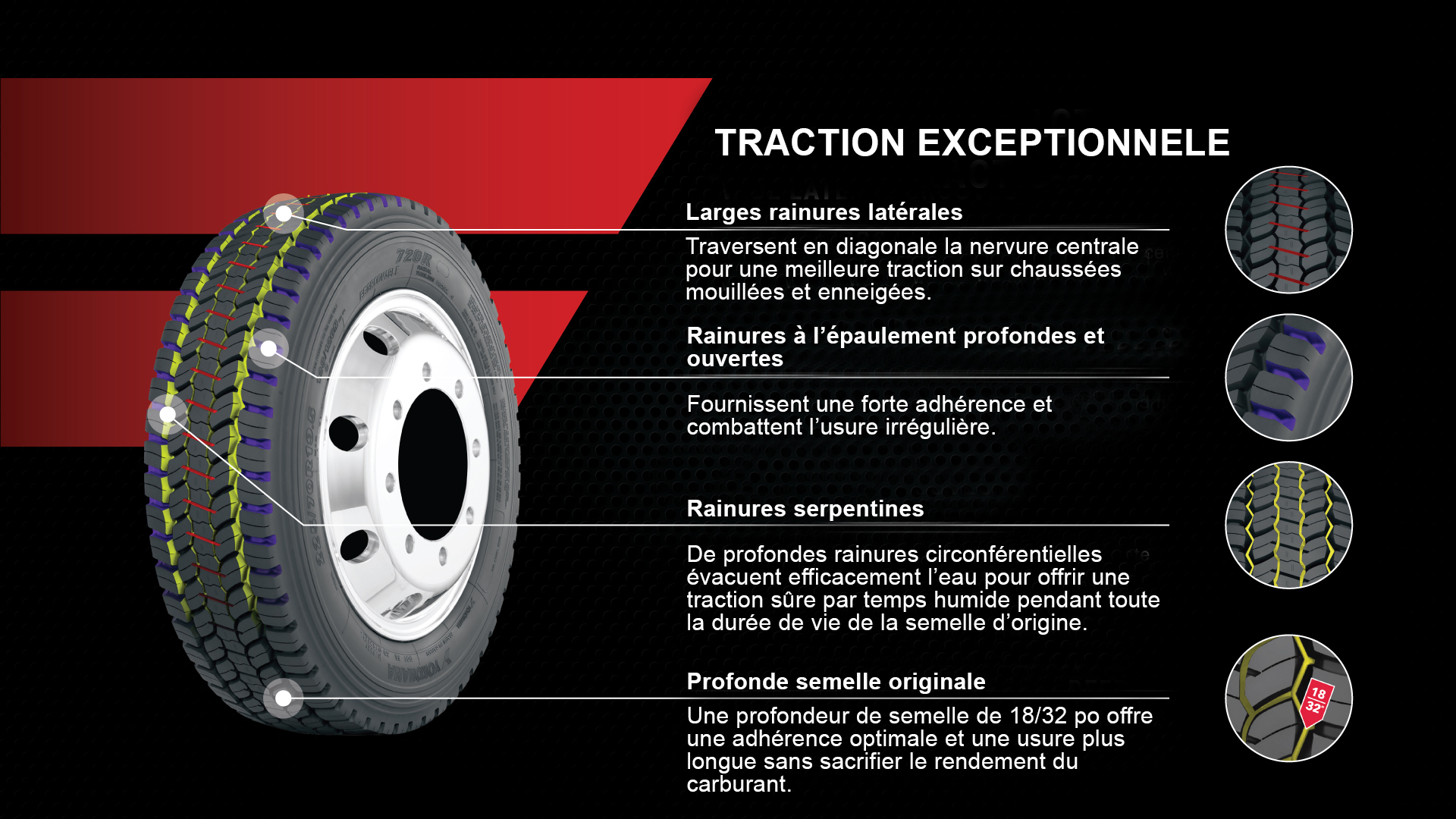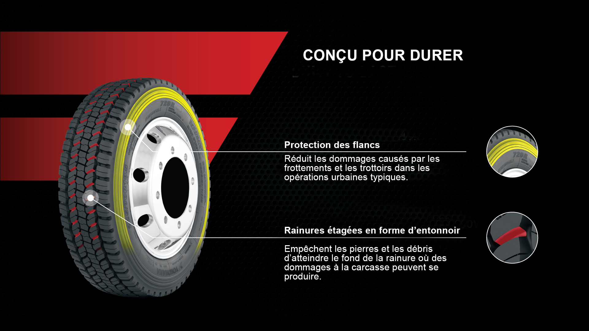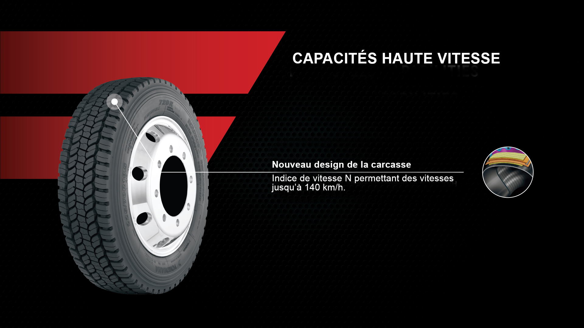 Le 720R est un pneu de traction de 19,5 pouces à indice de vitesse N, conçu spécialement pour les camionnettes et les opérations de livraison urbaine. Son design à semelle profonde est conçu pour durer et offre une traction tout au long de l’année pour une maniabilité exceptionnelle dans les environnements urbains.